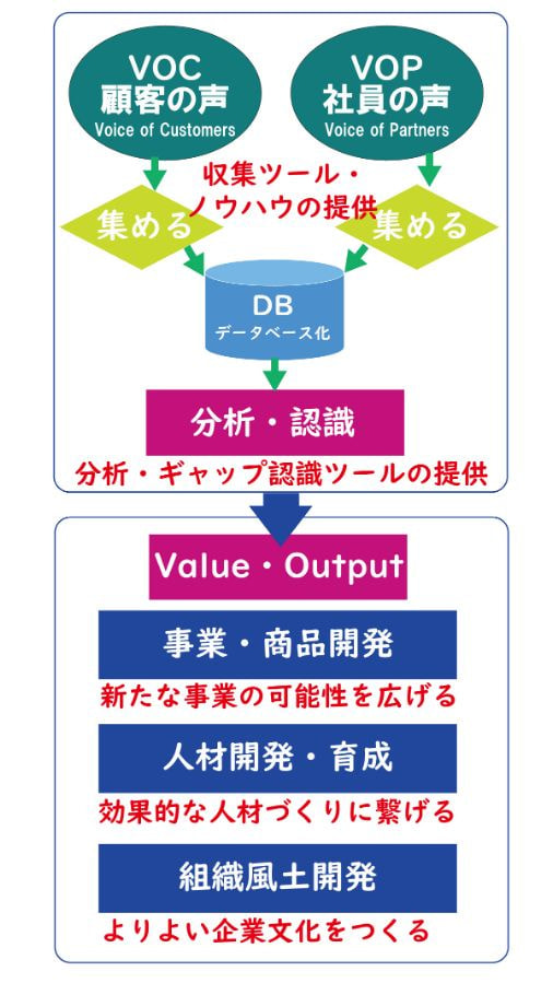 新事業展開・新サービス開発、人材開発につなげるためには社内外のニーズやウォンツを言語化し、分析するプロセスが必要であり、当社はこの方面に力を入れています。